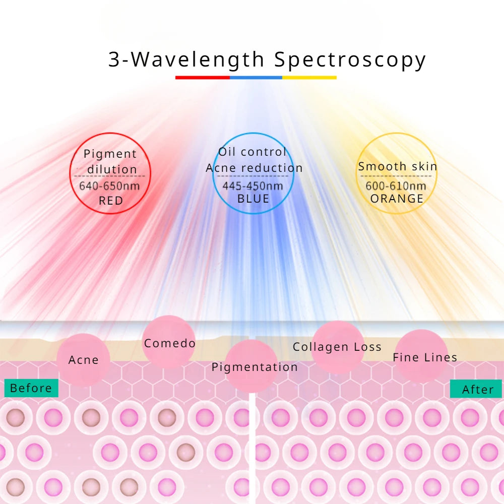 - Triple-Action LED Therapy: Enjoy the benefits of three different wavelengths—red, blue, and yellow—each designed to address specific skin issues, from reducing wrinkles to soothing acne-prone skin.